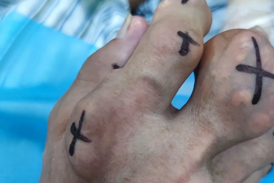 ⑥、痛风进展破坏关节致使关节僵直、畸形等。