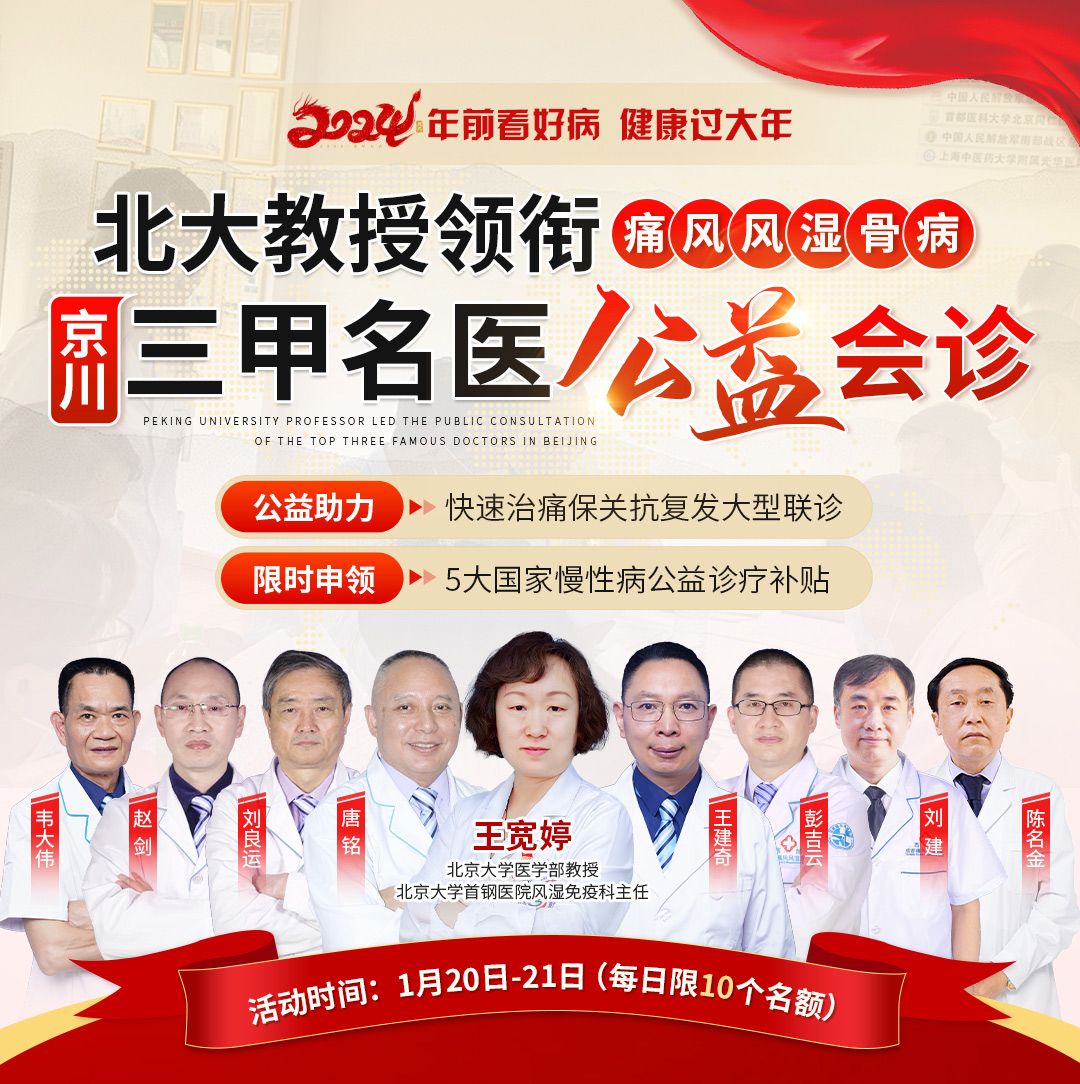 临近春节,为帮助广大患者及时走出治疗误区,尽早进行科学规范治疗,成都西部痛风风湿医院将于2024年1月20日-21日开展“京川三甲名医公益会诊”活动。特邀北京、四川三甲名院老教授联合亲诊,并发放5大公益补贴,旨在帮助广大患者明确病因、规范治疗,早日回归正常生活!微信搜索关注“成都西部痛风风湿医院官服”公众号,点击菜单栏“便民服务→预约挂号”即可预约报名